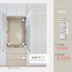 3- Anna 奶茶色 三抽衣櫃  寬 80x深 60x高 236 cm